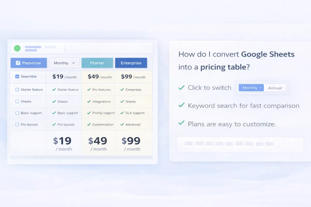 Quickly Build And Embed An Interactive Table That Converts Vistors Into Customers.